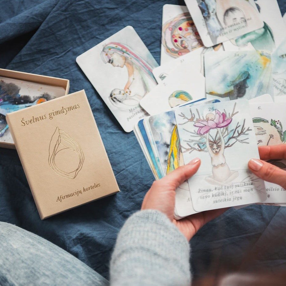 Afirmacijų kortelės kviečia ruoštis gimdymui ne per kontrolę, o per ryšį su savimi ir savo vaikeliu. Vos kelios minutės per dieną gali padėti jaustis ramiau, labiau pasitikėti savimi ir kurti pozityvesnę gimdymo patirtį.