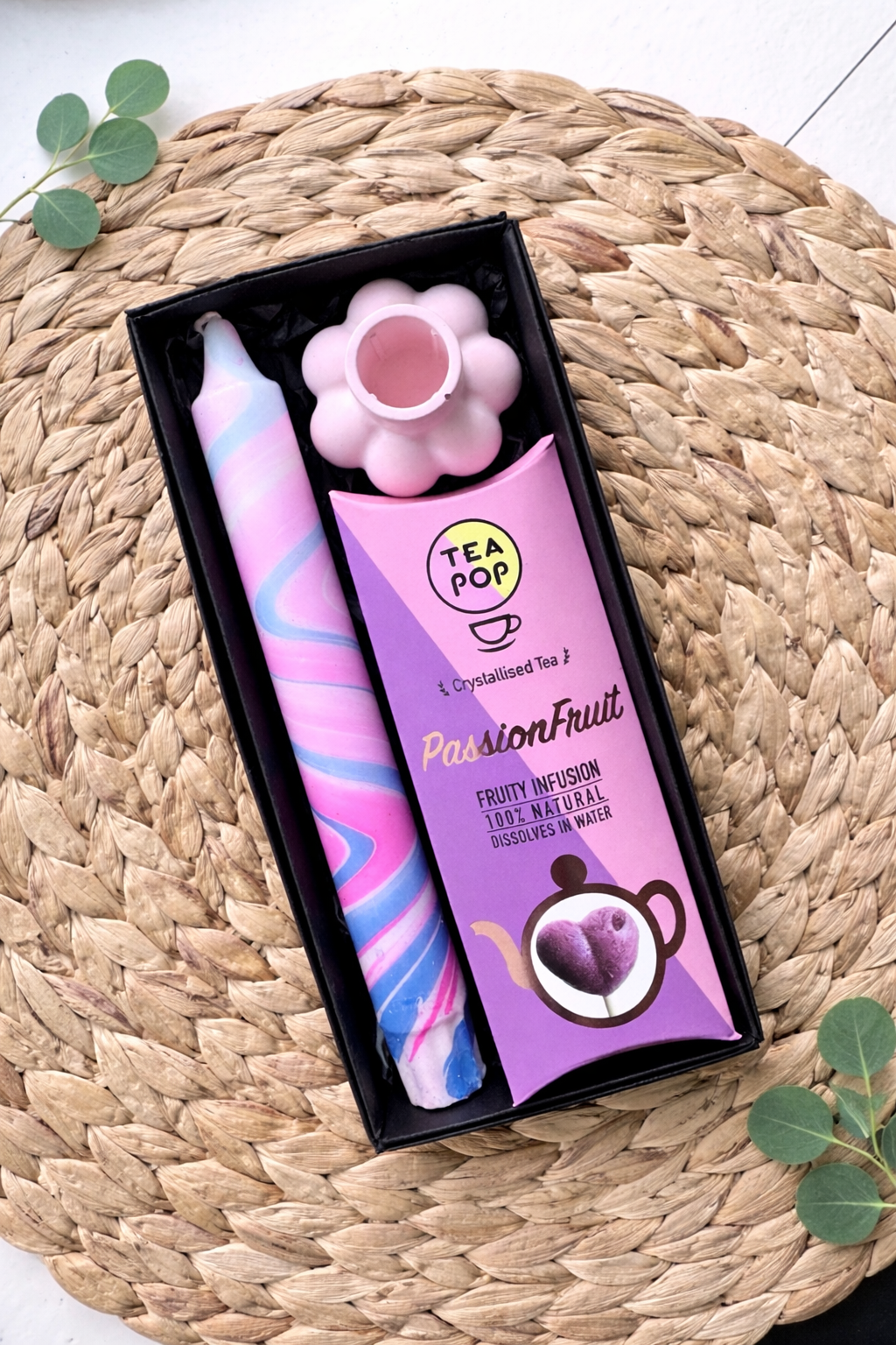 Mini Purple – jaukus ir subtilus dovanų rinkinys, skirtas mažoms, bet ypatingoms akimirkoms. Jame rasite spalvotą žvakę, pastelinę žaismingą žvakidę bei originalią mini arbatėlę ant pagaliuko „tea pop“. Tobulas pasirinkimas šilumai, ramybei ir lengvam saldžiam poilsiui sukurti. Ypatinga dovana nebūtinai turi būti didelė!