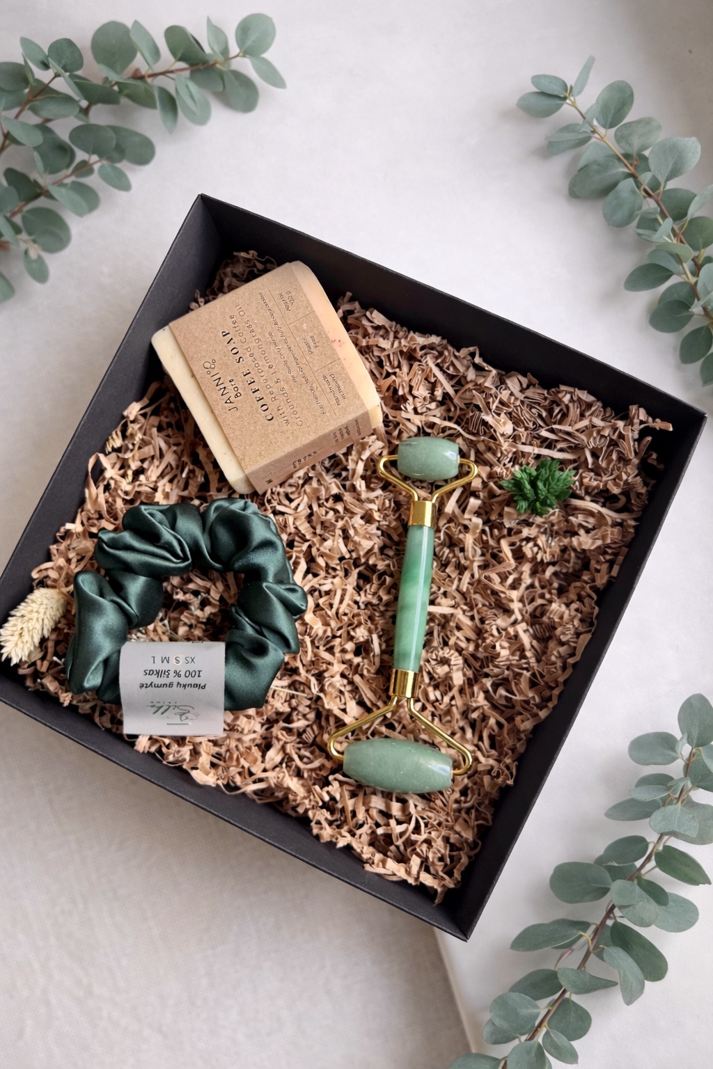 Švelnus prisilietimas prie kasdienio grožio ritualo. Rinkinyje – natūralaus šilko plaukų gumytė, sauganti plaukus nuo lūžinėjimo, gaivinantis veido masažuoklis (face roller) kraujotakai ir švytėjimui skatinti bei kvapnus natūralus muilas, praturtintas odai draugiškais ingredientais. Subtili ir prasminga dovana sau ar mylimam žmogui.